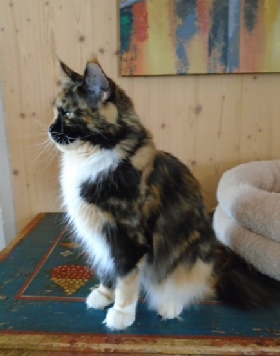 Gypsy ist eine sehr kräftige harmonische Katze mit exzellentem Typ! Sie hat eine sehr breite kantige Schnauze mit tiefen und breitem Kinn! Ihr Profil ist sauber und hat einen schönen Schwung! Der Körperbau ist sehr massiv und kräftig! Ihr Wesen ist ganz lieb und einzigartig. Gyps ist sehr sozial, sie liebt alle Ihre Mitbewohner, auf zwei und vier Beinen. Auch jeder Besucher wir von ihr ganz schnell ins Herz geschlossen!